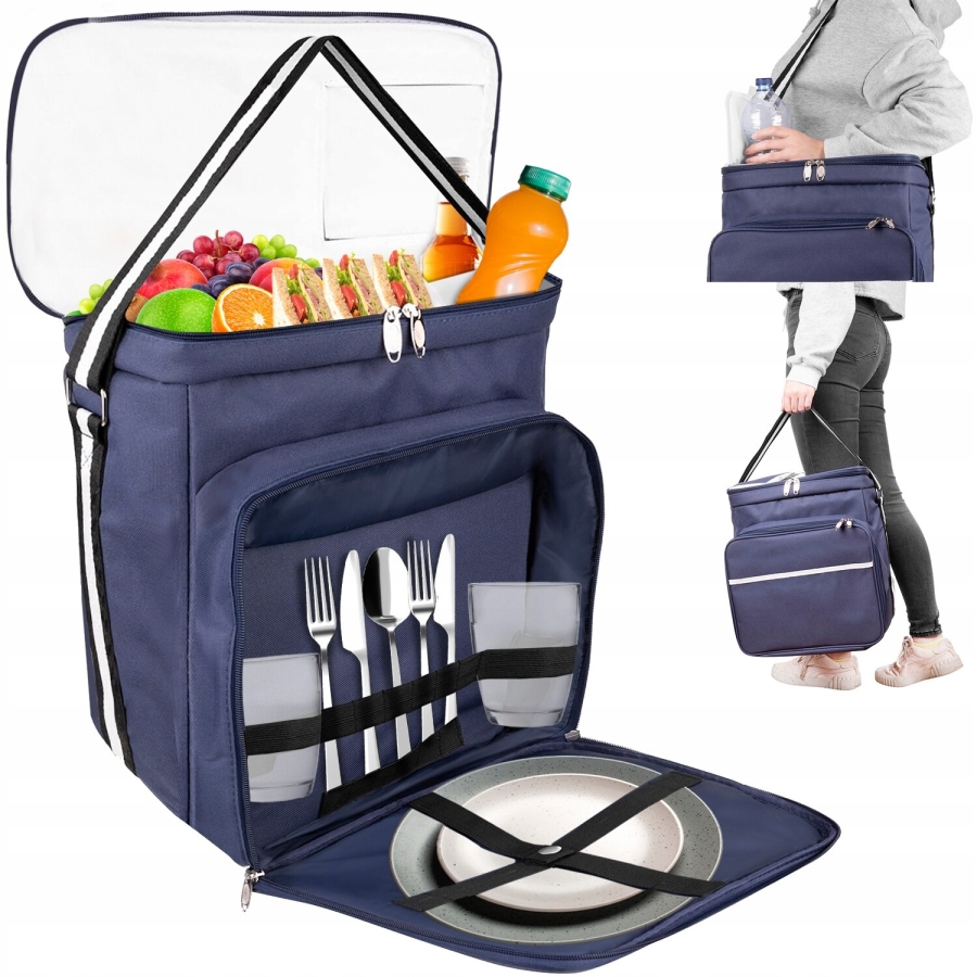 FUNKČNÍ - přenosná pikniková taška byla přizpůsobena k přepravě talířů, příborů a sklenic díky menší kapse má i kapsu na láhev na pití a nahoře kapsu na suchý zip pro rychlejší vyjmutí např. láhve.