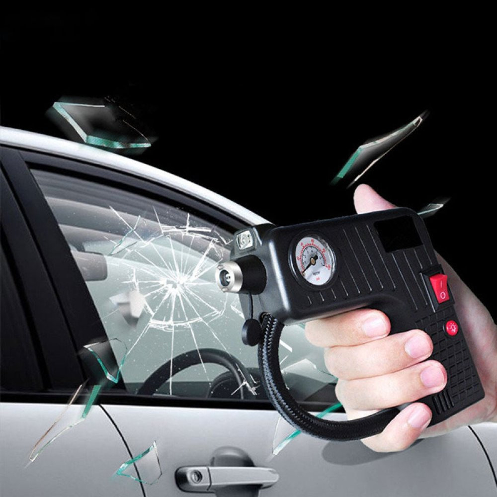 - 5 hlavních funkcí: rychlé huštění pneumatik-kompresor, tester tlaku v pneumatikách, kladívko rozbíječe oken, nouzový signál, svítilna