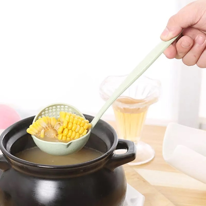 Praktická kuchyňská lžíce 2 v 1 je nezbytným doplňkem každé kuchyně. Skvěle poslouží k nakládání čerstvě vytažených knedlíků nebo těstovin na talíř a zalévání vodou pomocí speciálního embosování. Vyrobeno z potravinářského a tepelně odolného plastu. Díky dlouhé rukojeti s otvorem pro zavěšení je lžíce v praxi mimořádně užitečná.
