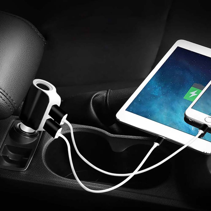 Spolehlivá USB nabíječka s přídavnou zásuvkou pro zapalovač je praktická vychytávka do auta - nikdy nevíte, kdy se bude hodit! Díky němu můžete k napájení připojit tři zařízení, například telefon, navigaci, notebook, CB rádio a další. Je solidně postavená a na rozdíl od nejlevnějších nabíječek je ta naše perfektně osazená a nepohyblivě zasunutá v zásuvce zapalovače, takže se přístroje nevypínají a řidič nemusí plýtvat nervy na opravování kabelů :)