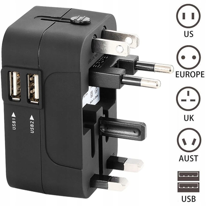 Tento univerzální adaptér je nezbytnou pomůckou pro ty, jenž často cestují do zahraničí a navštěvují jiné, cizí kontinenty. Adaptér disponuje 2 USB porty, které lze použít jako rozbočovač, pokud v místě pobytu není dostatek elektrických zásuvek. Pokud je například ve vašem pokoji pouze jedna zásuvka a potřebujete nabíjet a používat několik zařízení najednou, můžete adaptér zapojit do zásuvky, poté použít jeden port USB pro připojení nabíječky a druhý pro připojení telefonu, tabletu nebo jiného zařízení. Díky tomuto adaptéru dokážete nabíjet až 3 zařízení současně. V zemích, kde obyvatelé používají jiné zásuvky, než je ta vaše, vás adaptér zachrání, tak neváhejte a pořiďte si jej do své výbavy.