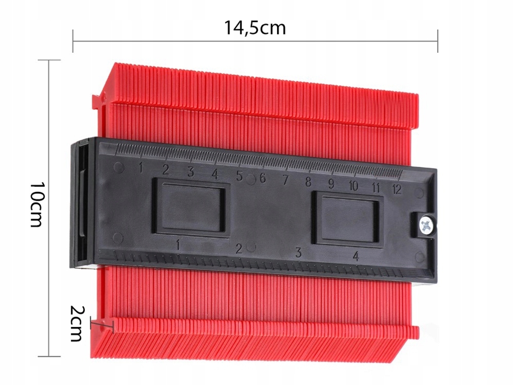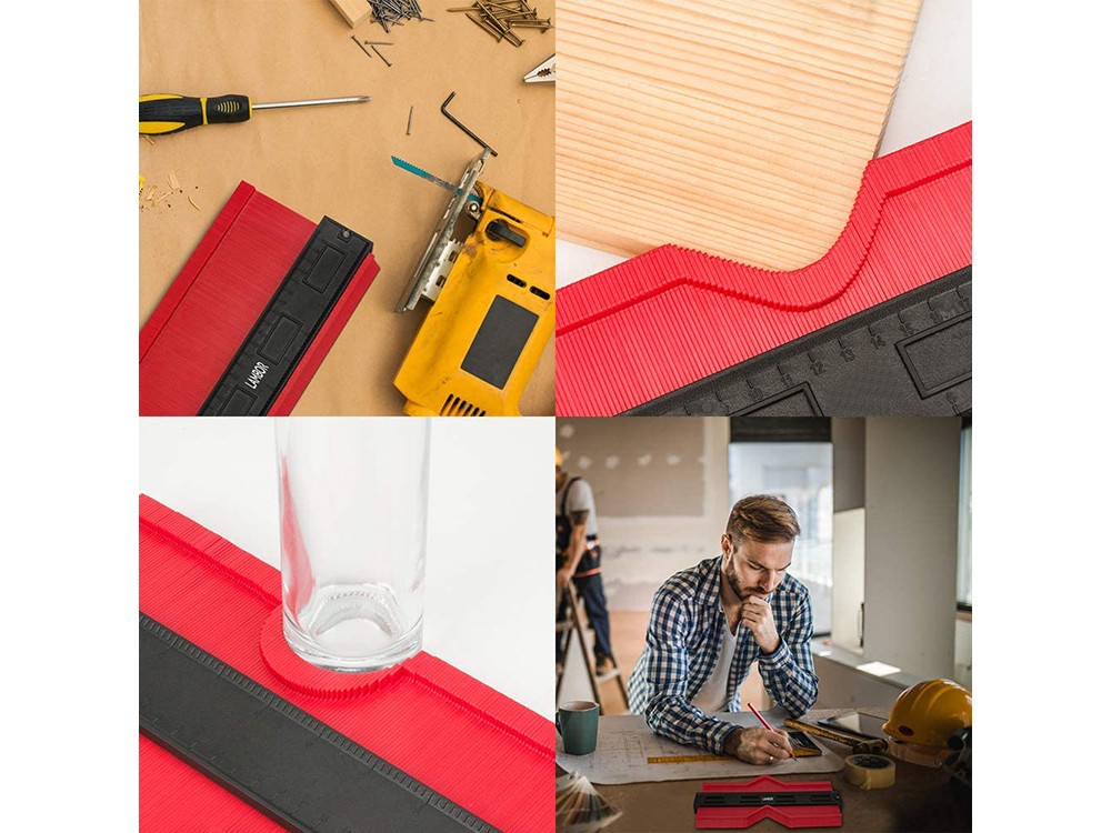 Šablona umožňuje snadno a rychle obkreslit tvary a přenést je na materiál. Snadno tak můžete vyříznout půlkruhy pro trubku nebo obkreslit tvar rámu dveří. Šablona je široká 145 mm, takže ji můžete použít k obkreslení několika dílů najednou.