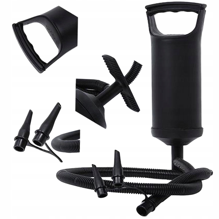 Pumpa je velmi účinná, rychlá a šikovná a má tři univerzální pumpovací koncovky a pružnou hadici pro přívod vzduchu.