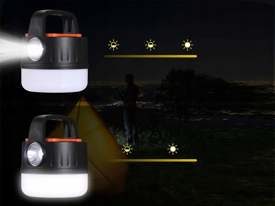 Velmi praktické a pohodlné. Pokud chceme lampu zapnout, stačí změnit režim osvětlení, pak máme 360 stupňů jasného LED světla.
