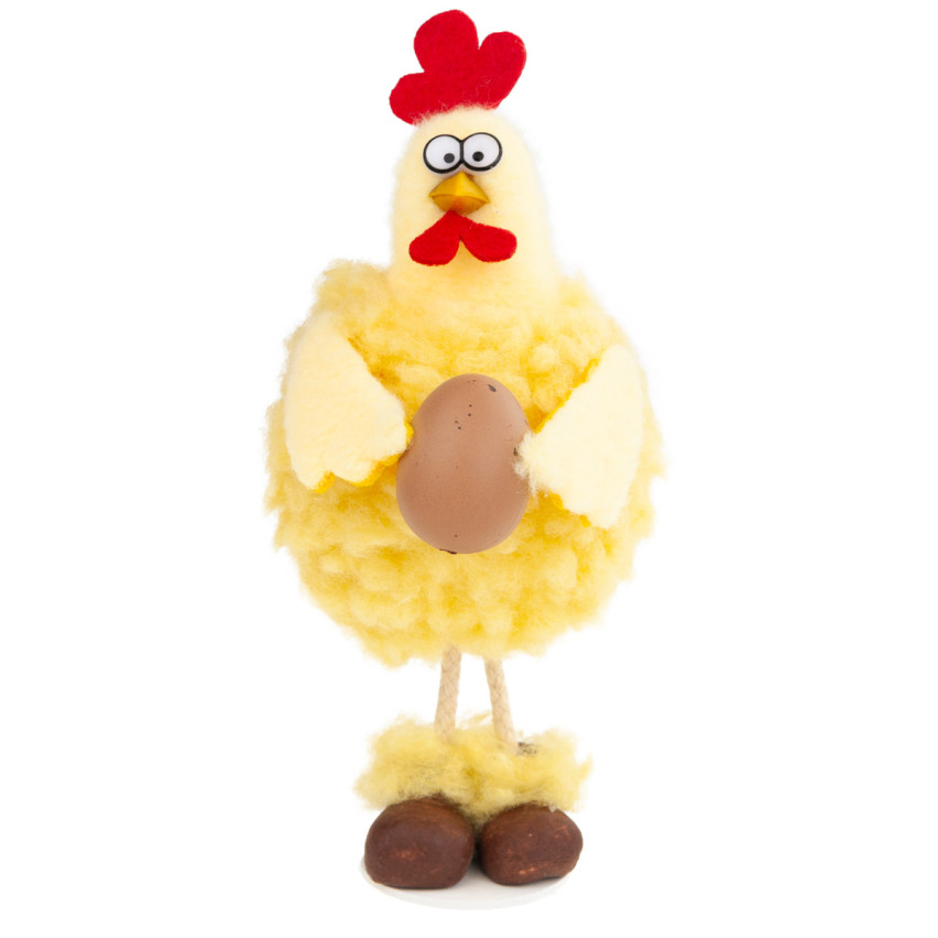 Žluté kuřátko držící vejce přitahuje pozornost svým vzhledem. Skvěle se hodí jako ozdoba velikonočního košíčku, aranžmá nebo jiné jarní či velikonoční kompozice. Vše záleží na vaší fantazii!