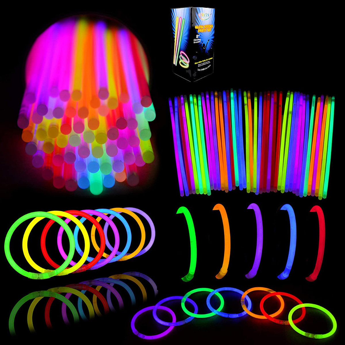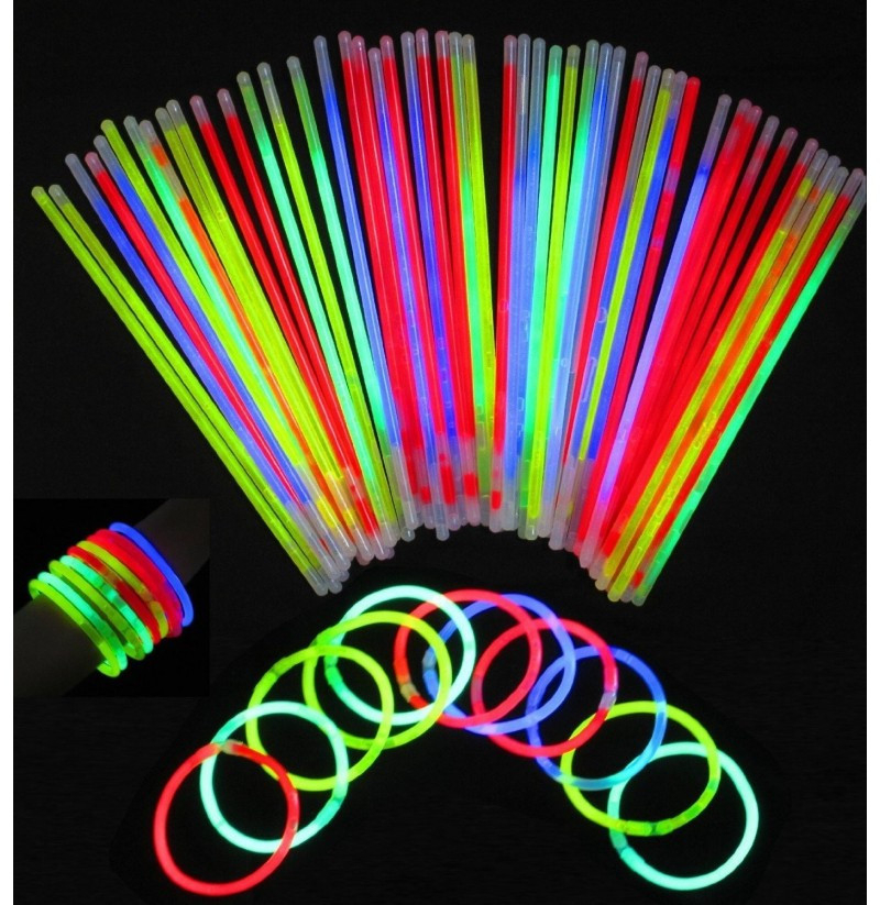 - Vícebarevné – sada obsahuje 100 různých barev světelných tyčinek, které lze spojit pomocí přiložených spojek