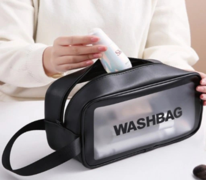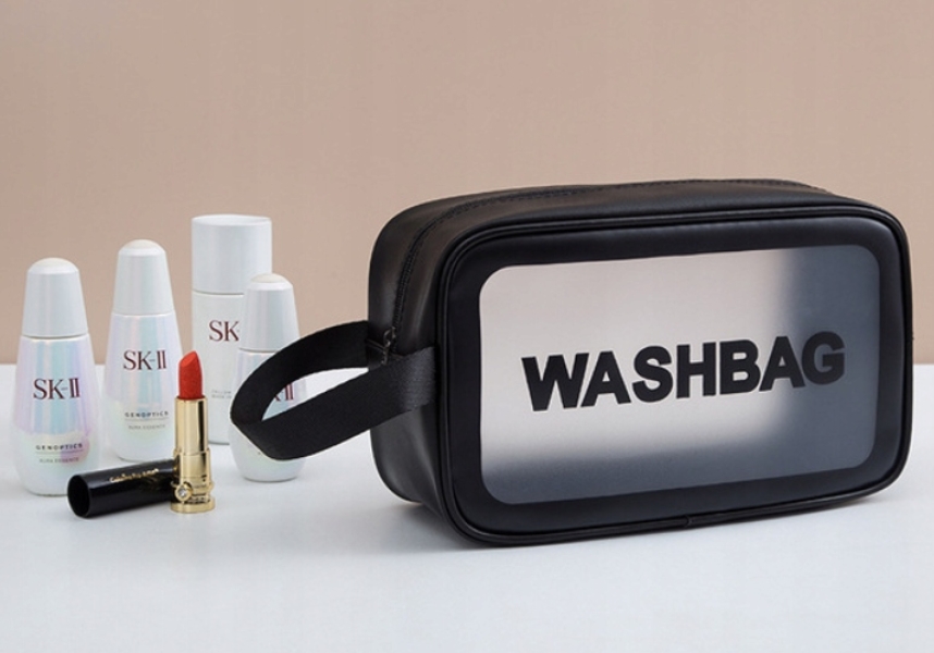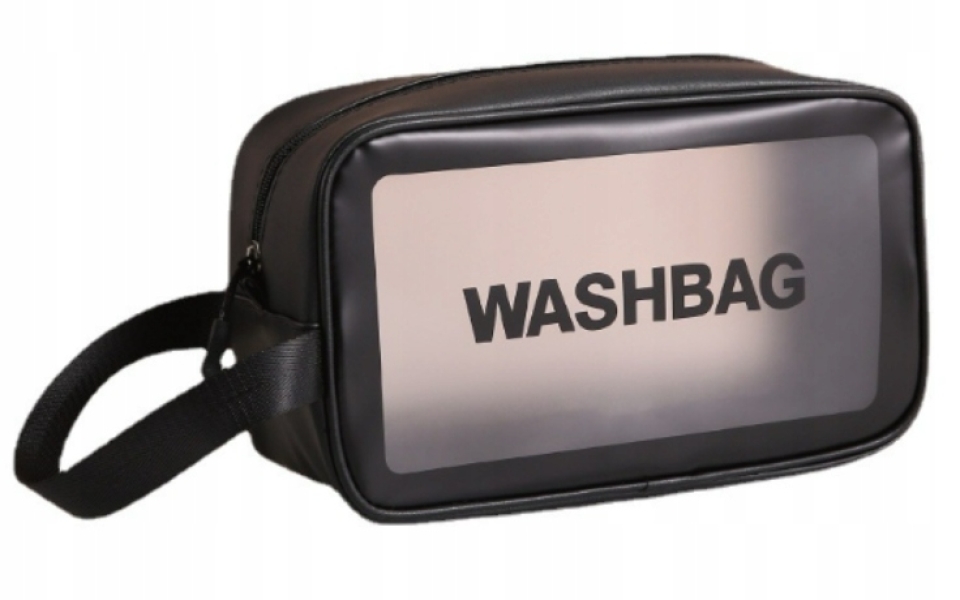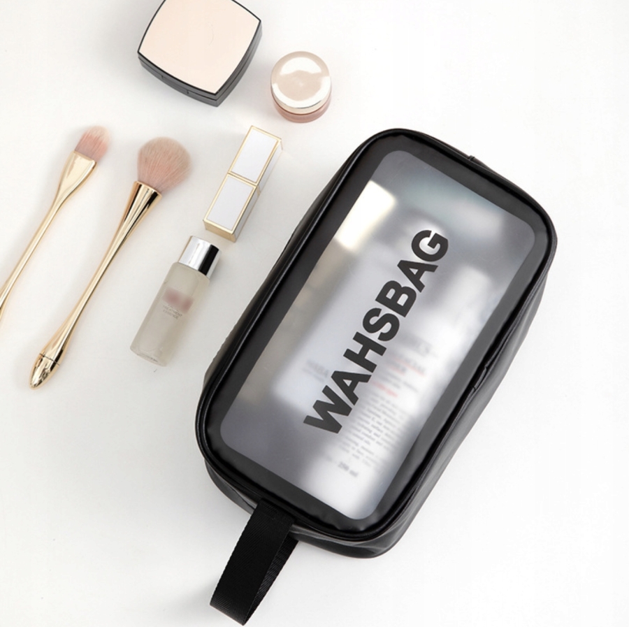 Velmi praktická, organizérská, voděodolná kosmetická taštička. Transparentní s jednou rukojetí.