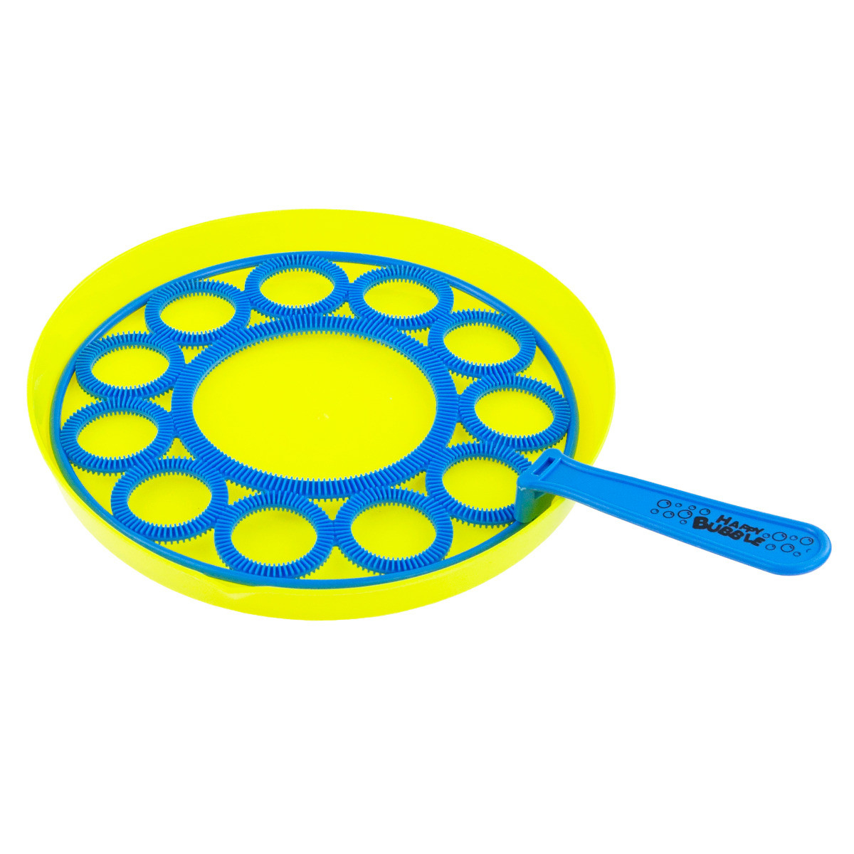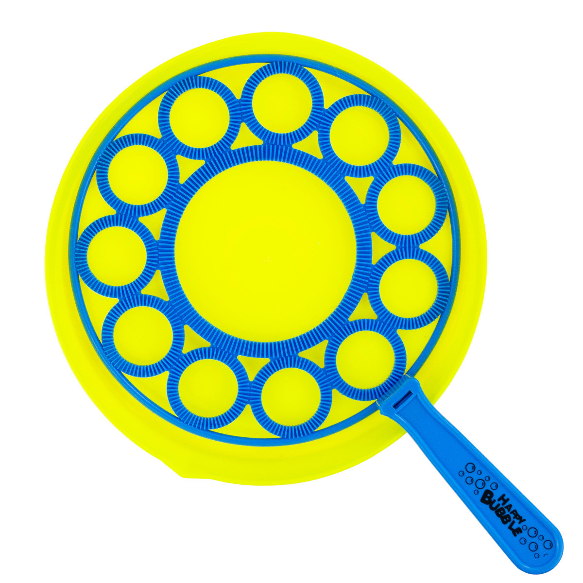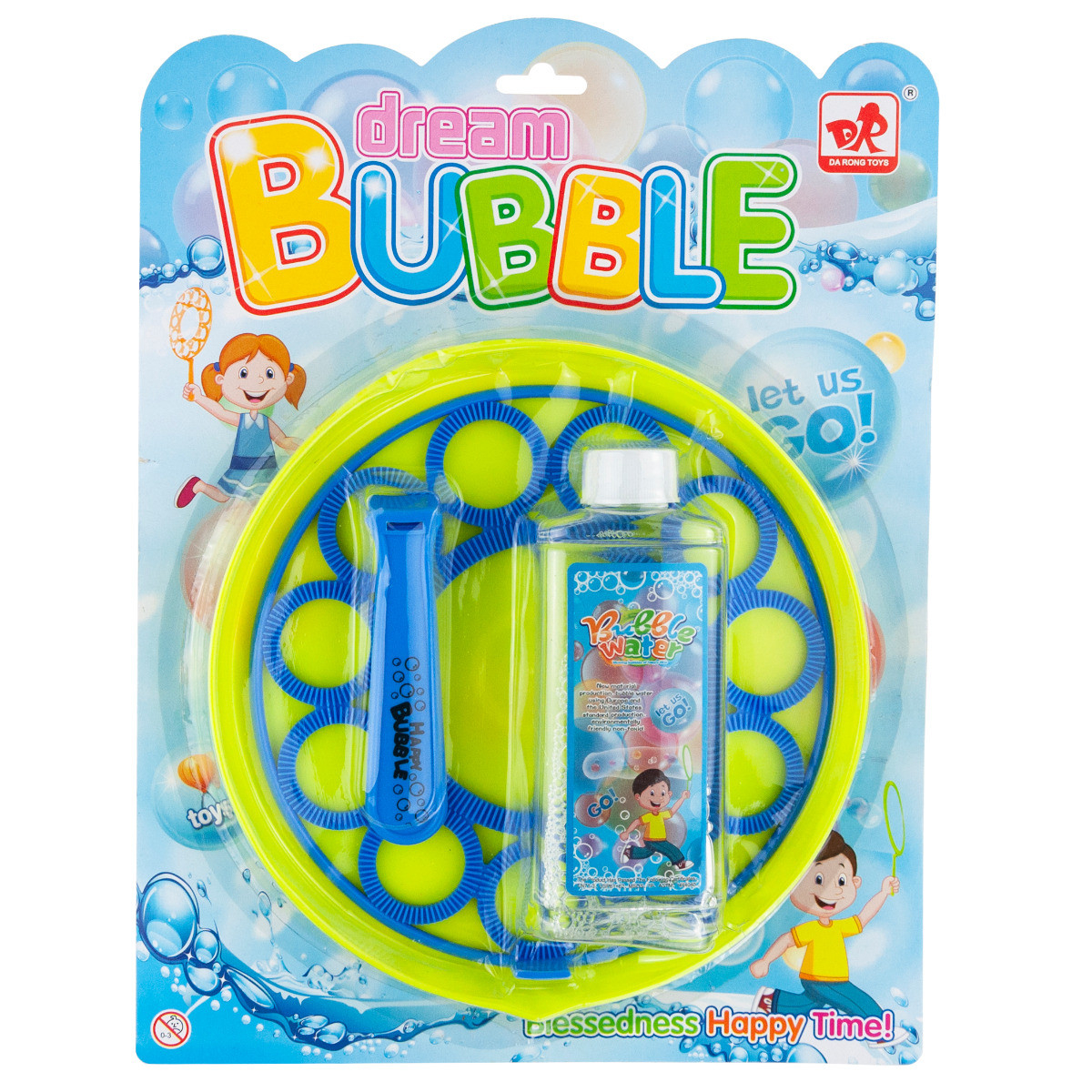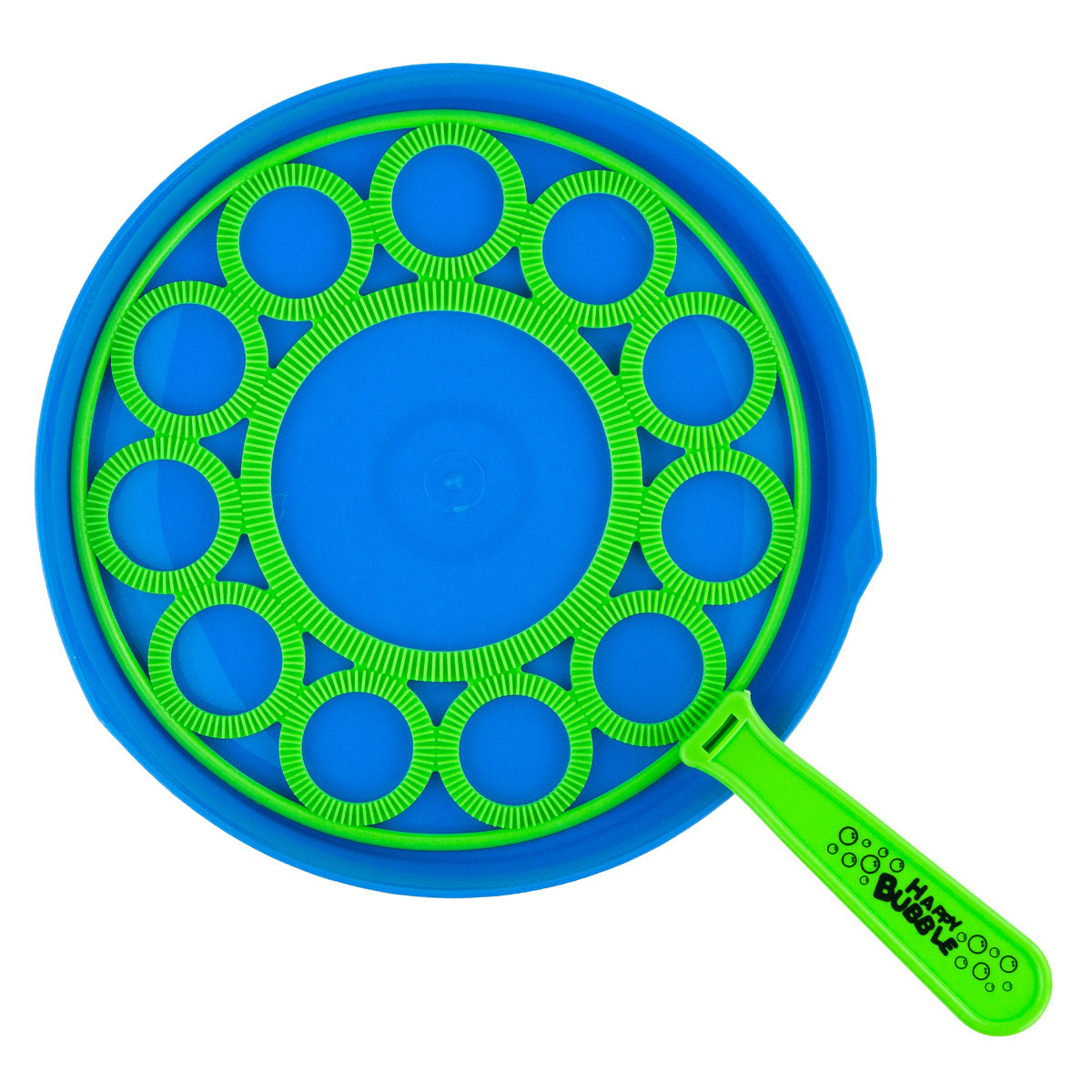 - Obsahuje obruč s kolečky pro vytváření velkého množství barevných bublin.
