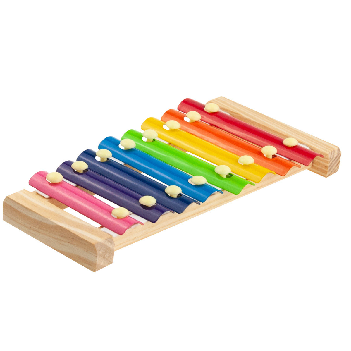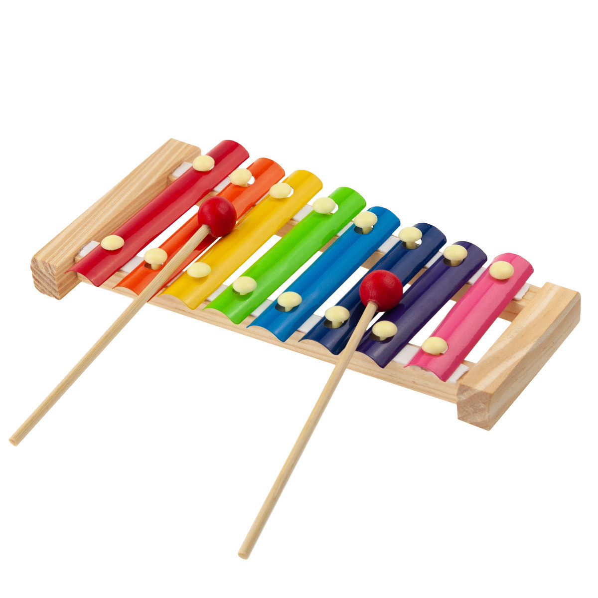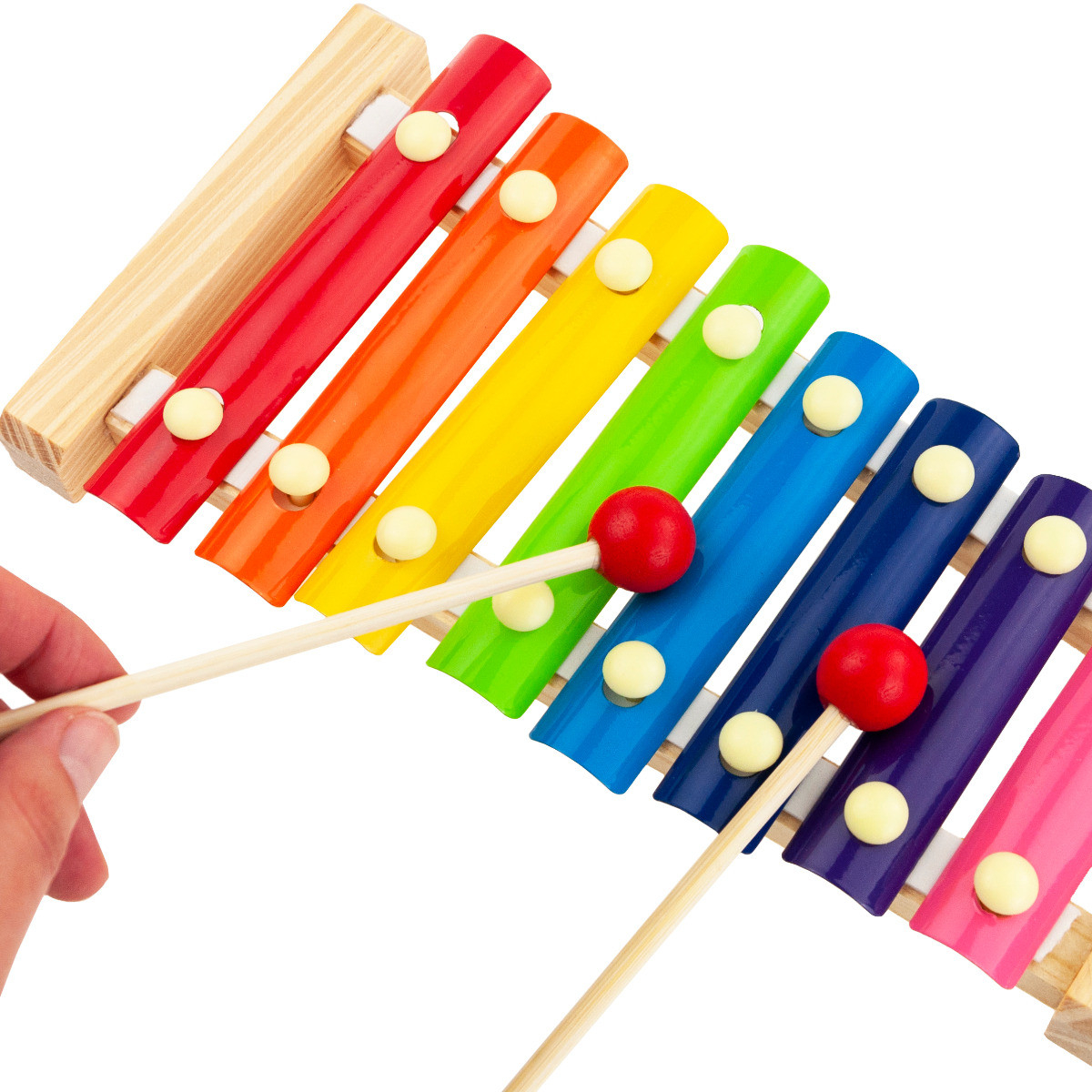 - Dřevěné osmihlasé xylofonky malované bezpečnými barvami.