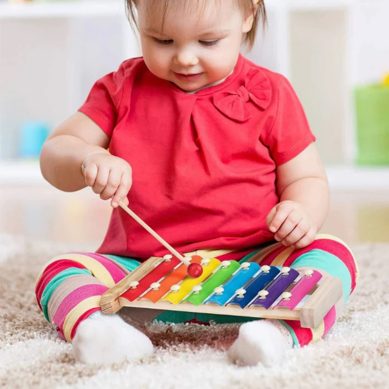 Xylofon pomáhá dětem rozpoznávat tóny a rytmus, čímž přirozeně rozvíjejí jejich hudební sluch. Hravý design s pestrými barvami motivuje k prvnímu poznávání barev i čísel. Podporuje kreativitu a soustředění – dítě se učí nejen hudebním dovednostem, ale i trpělivosti a jemné motorice. Skvělá volba pro hru o samotě, s rodiči nebo s kamarády, což zároveň rozvíjí sociální dovednosti.