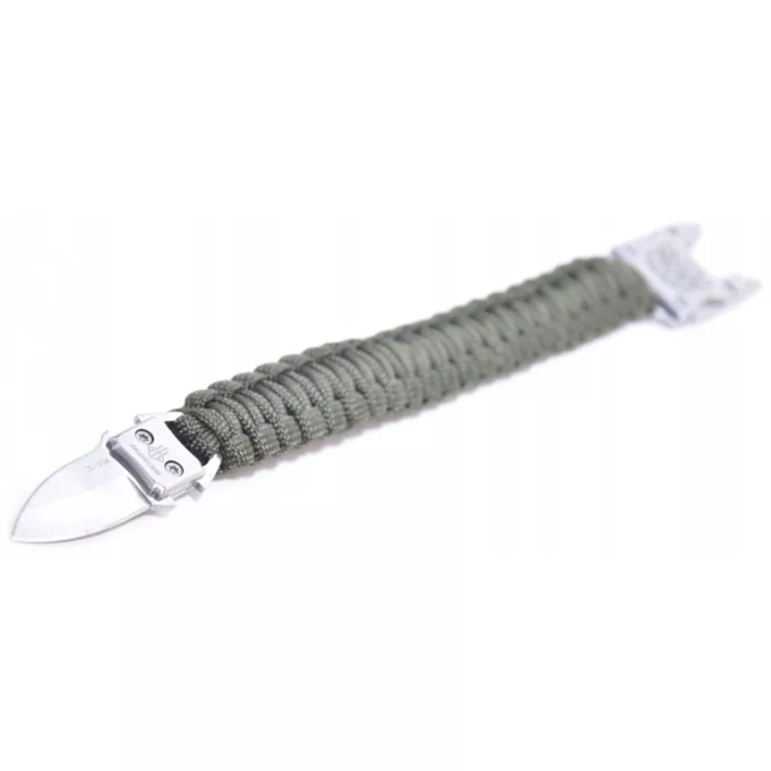 Jestliže mezi vaše koníčky patří pobyt ve volné přírodě či rádi si vyzkoušíte kurz přežití, tak rozhodně by jste neměli zapomínat na tu správnou výbavu, která vám v extrémních a nečekaných situacích dokáže pomoci a do této výbavy můžeme zahrnout i tento vojenský náramek z kvalitního a pevného materiálu, který na svém konci má řezák. Tento náramek a jeho funkčnost oceníte především tehdy, když nemáte po ruce potřebné nářadí či nůž. Celková délka náramku je 26 cm a jeho hmotnost je pouhých 25 g, což zaručí, že náramek vás nikterak nebude zbytečně zatěžovat.