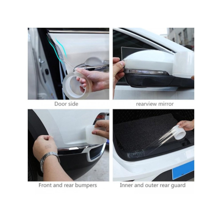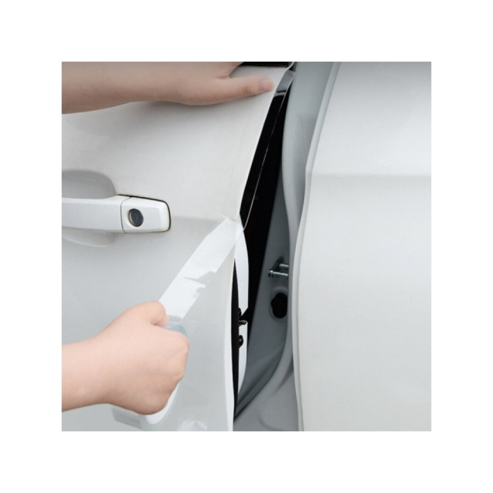 Tato bezbarvá páska na ochranu prahů dveří poskytuje maximální ochranu vnější i vnitřní strany před poškozením či poškrábáním a to především v období podzimu a zimy. Po správné aplikaci pásky se voda odpaří a lepidlo se dokonale naváže na podklad, poté se páska stane zcela neviditelnou. V případě chladného počasí může pásce trvat 2 až 3 dny, než úplně zaschne a je zcela možné, že se lehce páska zamlží, nicméně jakmile lepidlo zcela zaschne, stane se páska neviditelnou.