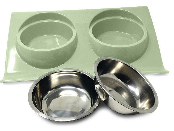 Hledáte pro svého domácího mazlíčka misku na krmivo i vodu, která bude vypadat nejen skvěle, ale také především plnit svou funkci a zabírat méně prostoru? Zkuste tuto dvojitou misku. Tato dvojitá miska se skládá z praktického podstavce, do kterého jsou umístěny 2 nerezové misky, které lze kdykoli samostatně vyjmout. Díky praktickému podstavci jsou misky stabilní a v jejich okolí je vždy čisto a pořádek bez pozůstatku krmiva či vody. Vyzkoušejte tohoto praktického pomocníka, kterého ocení nejen váš domácí mazlíček.