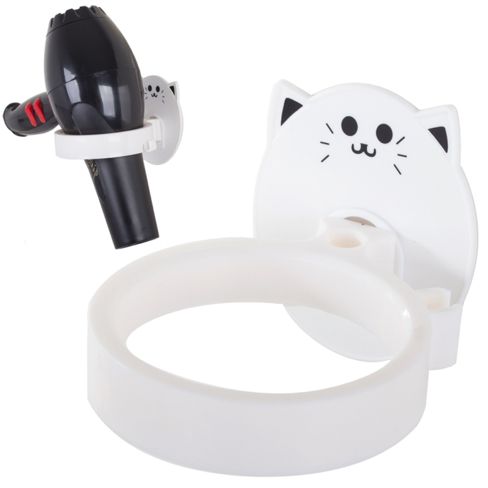 Nástěnný držák na fén, praktická pomůcka, která vám ušetří místo v koupelně. Držák je vybaven speciálním držákem kabelu a přídavným věšákem, například na sponky do vlasů nebo žíňku. Díky univerzálnímu provedení je držák vhodný pro většinu druhů fénů. Držák díky svému jednoduchému a estetickému vzhledu se skvěle hodí do každého interiéru a současně lehká a odolná plastová konstrukce zajistí dlouhou životnost držáku. Držák se velmi snadno instaluje, stačí odmastit povrch, na který bude držák nalepen, poté přilepit lepidlem, které je součástí sady. Doporučuje se montovat na povrchy jako jsou dlaždice atd. Mějte svůj fén vždy po ruce s tímto praktickým držákem.