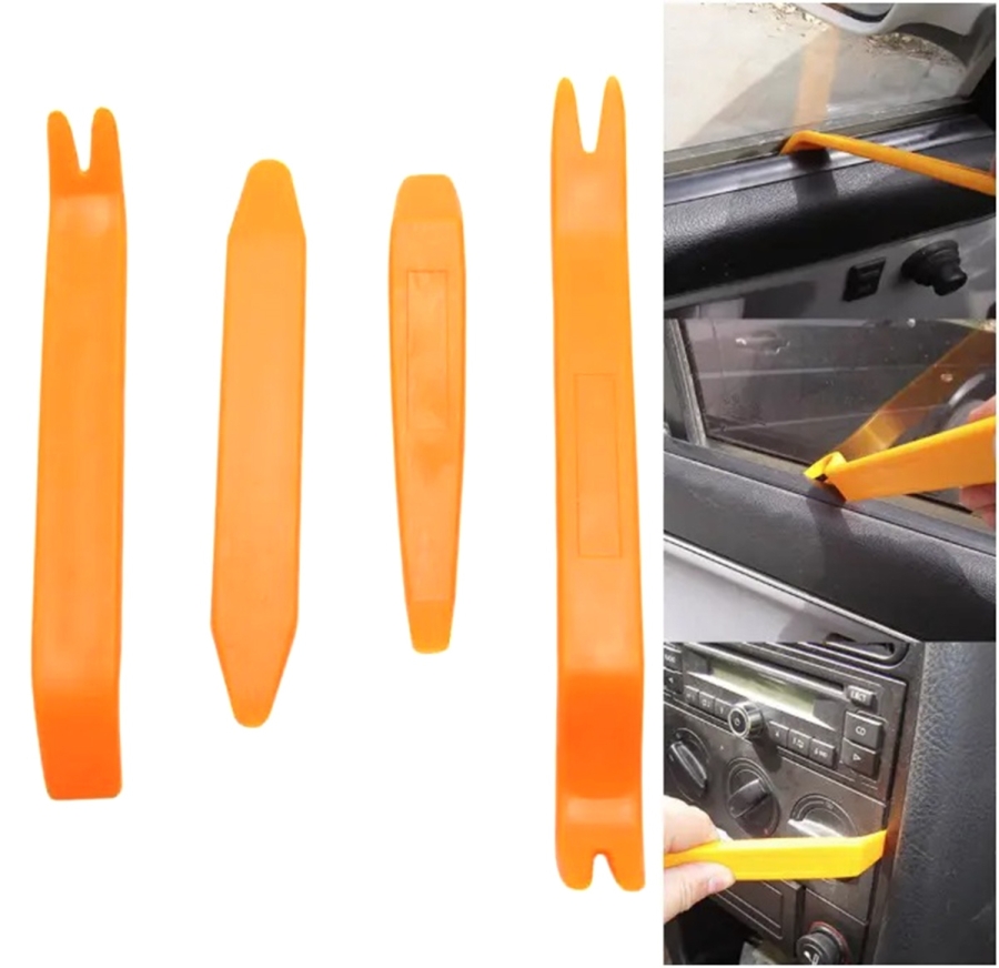 4dílná sada nástrojů pro bezpečnou demontáž automobilového čalounění. Nejvyšší kvalita! Naše stahováky jsou vyrobeny z pevného a odolného plastu, který umožňuje bezpečné a rychlé odstranění čalounění! Ve srovnání s levnými a nekvalitními stahováky nabízenými konkurencí!
