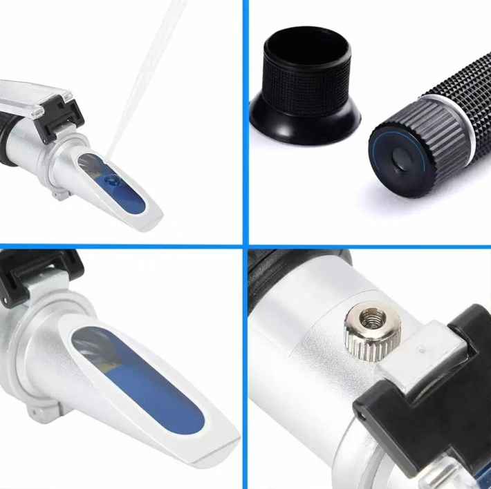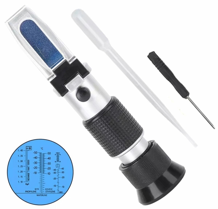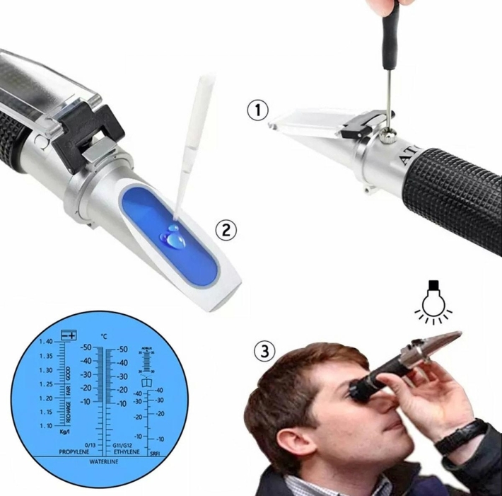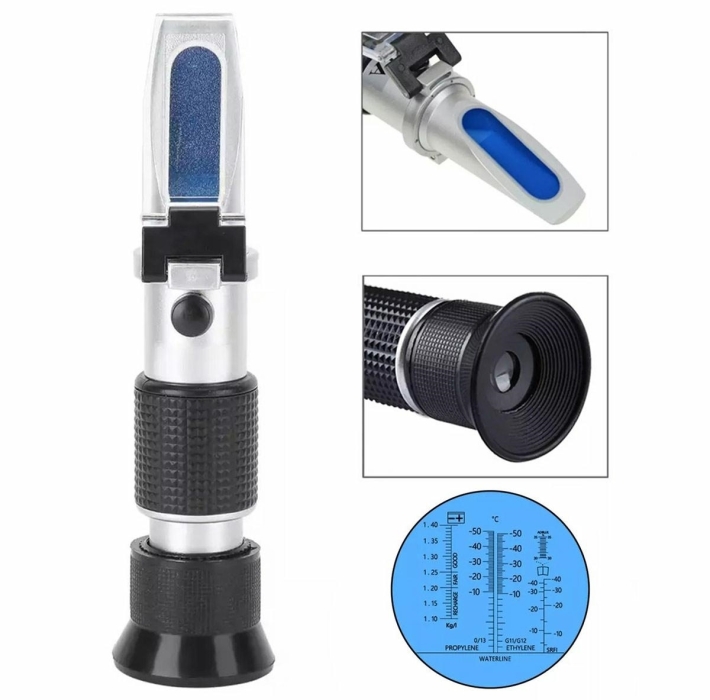 Kompaktní, optický tester provozních kapalin automobilů. Umožňuje okamžité měření obsahu elektrolytu v baterii a bodu tuhnutí chladicích kapalin a kapalin na bázi glykolu. Jednoduše odeberte vzorek tekutiny pipetou, umístěte vzorek na ovládací panel refraktometru a odečtěte indikaci pomocí hledáčku.