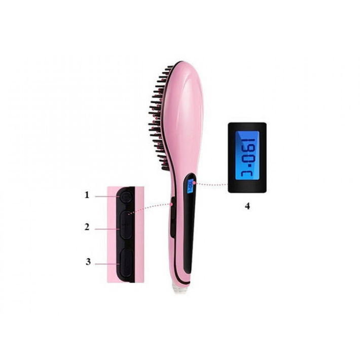 Elektrický kartáč na rovnání vlasů s LCD displejem je ideální pomocník pro rychlou úpravu Vašich vlasů po umytí. Během pár okamžiků vlasy nejen vysuší, ale také narovná. Nemusíte si tak zbytečně trápit své vlasy žehličkou. Určený pro česání, s ionizační funkcí 2v1, což znamená že zabraňuje statické elektřině vlasů. Má LCD displej, který zobrazuje teplotu. Vlasy jsou po použití kartáčem neuvěřitelně hladké a lesklé. Určeno pro všechny typy vlasů. Má ochranné špičky proti popálení kůže.