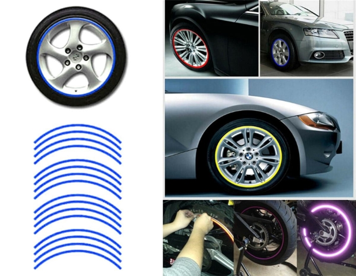Tyto reflexní, samolepící pásky na kola a pneumatiky se skvěle hodí pro jakýkoli typ automobilu či motocyklu. Pásky nejen že zvyšují viditelnost a bezpečnost na silnici, ale vytváří také úžasný světlný efekt obzvláště v noci. Tato sada samolepek obsahuje 16 kusů pásků, o šířce 8 mm. Pásky jsou vyrobeny z kvalitního PVC materiálu se zvýšenou přilnavostí a odolností. Pásky jsou vhodné pro ráfky o rozměru 16 až 18" palců.