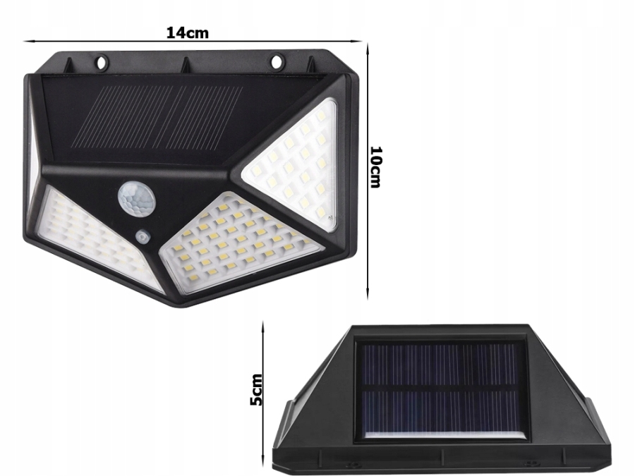 Solární lampa je solární zařízení, které zaručuje osvětlení bez dalšího zdroje energie. Je vybaven velmi jasným panelem 100 LED bodů se silným světelným výkonem a snímačem pohybu.